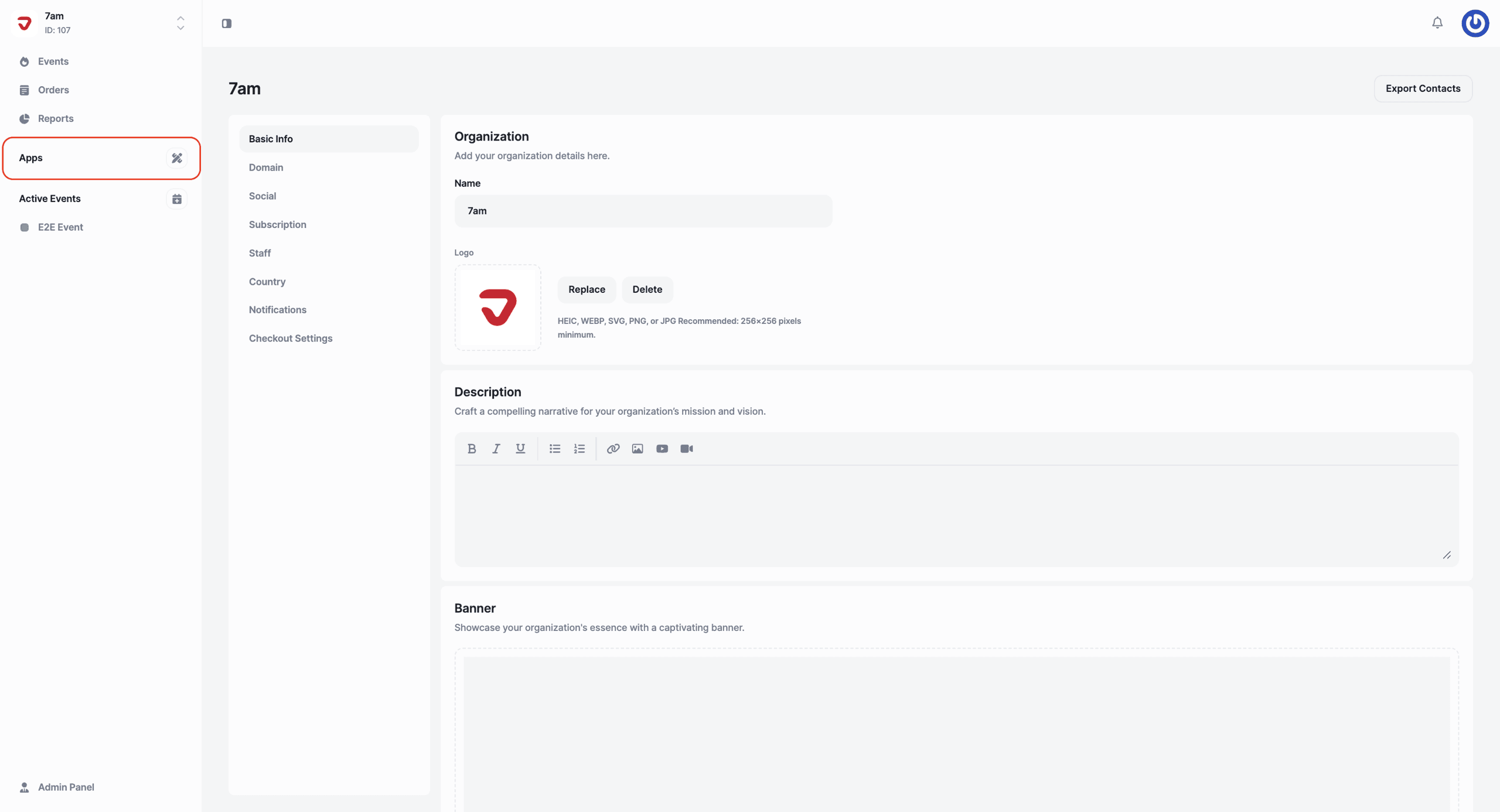 Once you’re inside your organization, go to the left-hand menu and click on 'Apps'.