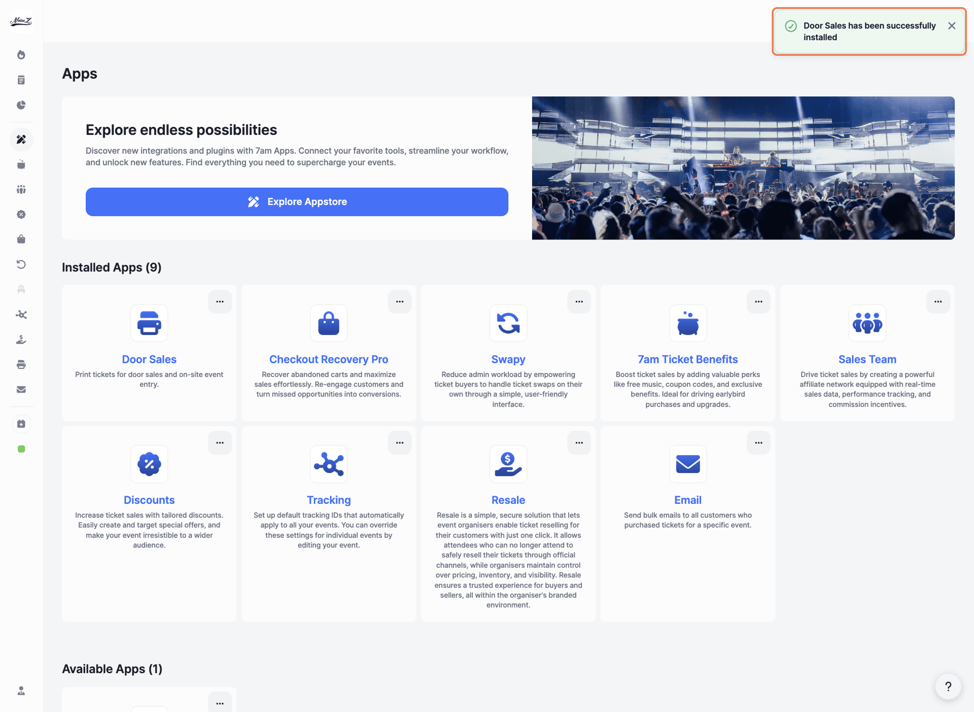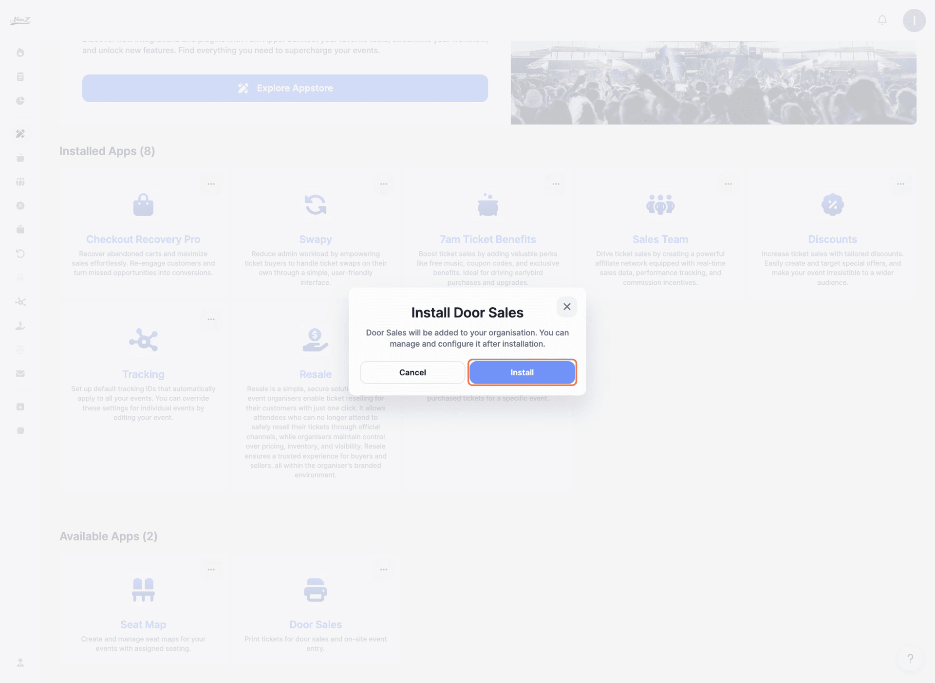 Click on 'Door Sales' under your Installed Apps.