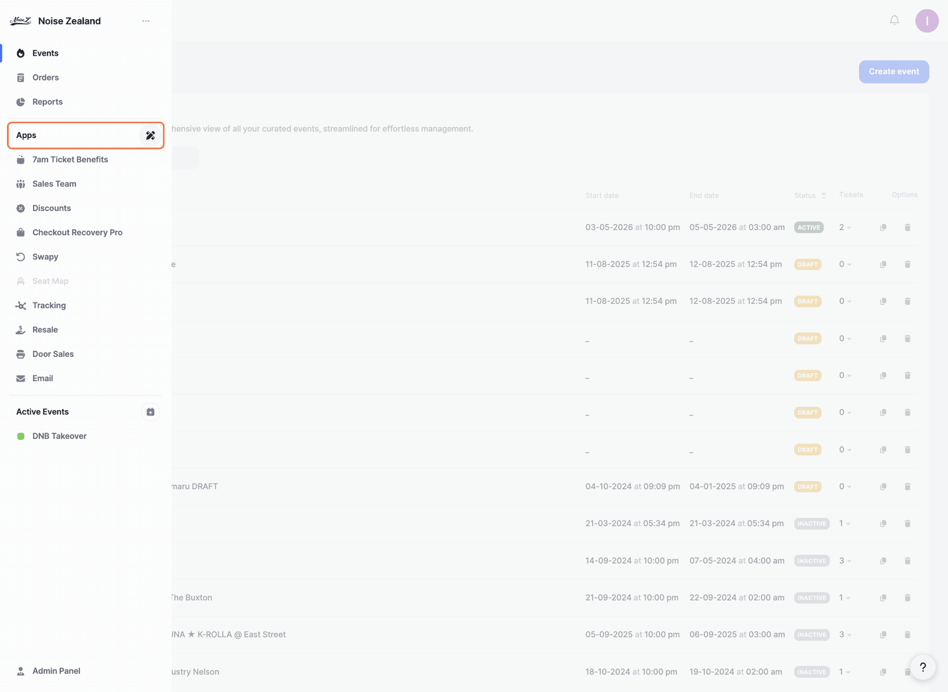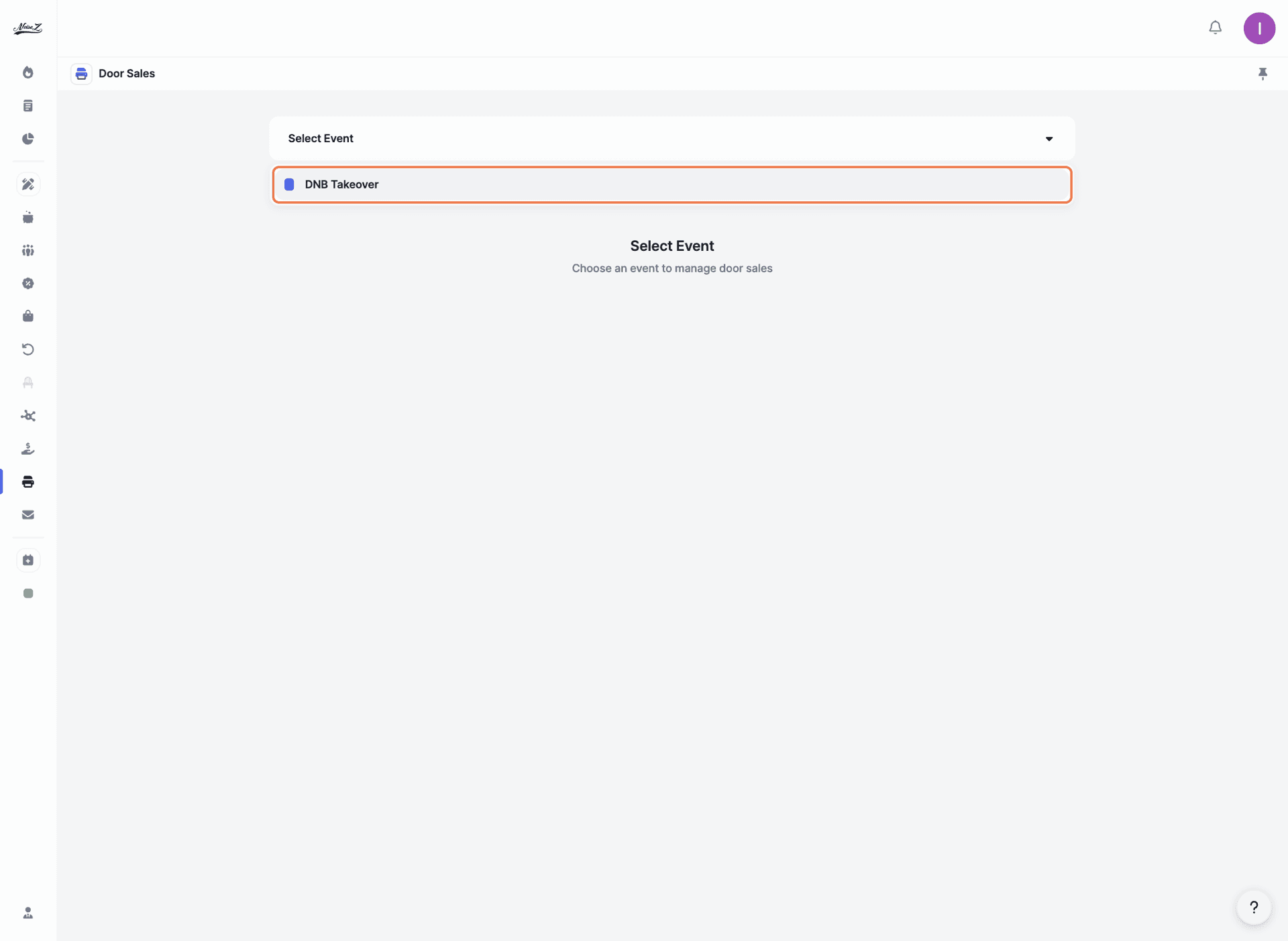 Select an event to manage door sales.