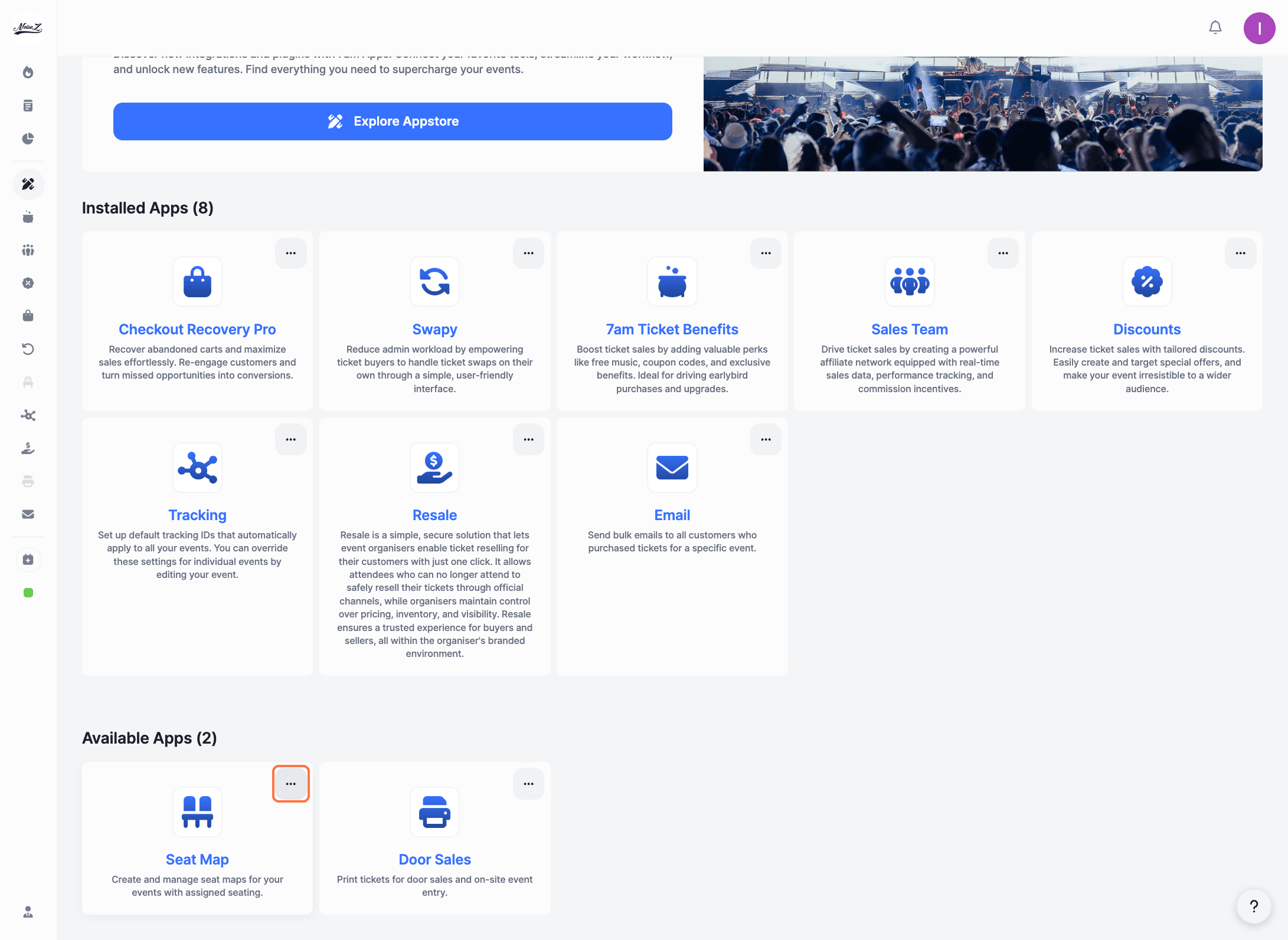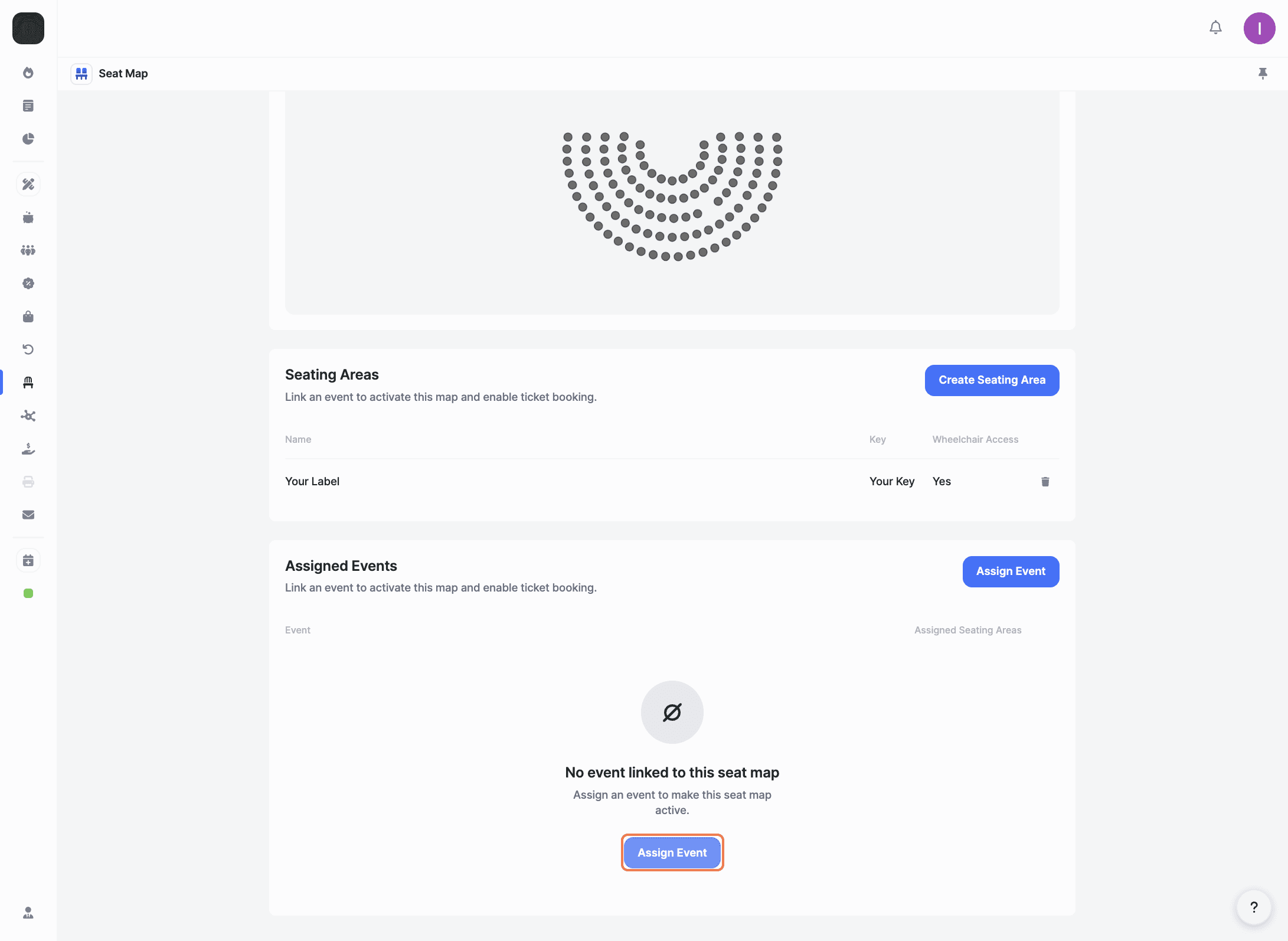 Create and manage seat maps for your events with assigned seating. This feature lets you design custom venue layouts, define seating areas, and link them to specific events for seamless ticket booking.