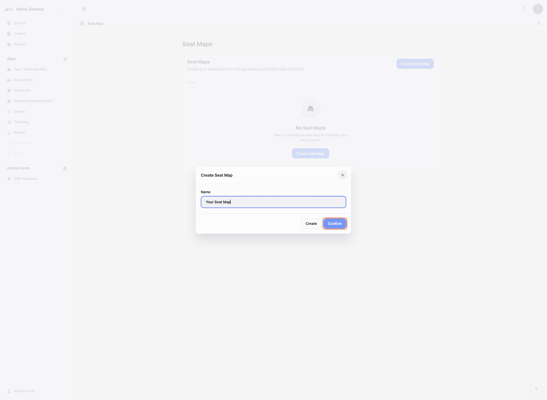 Enter a name for your seat map and click 'Confirm'. Your new seat map will appear in the list.