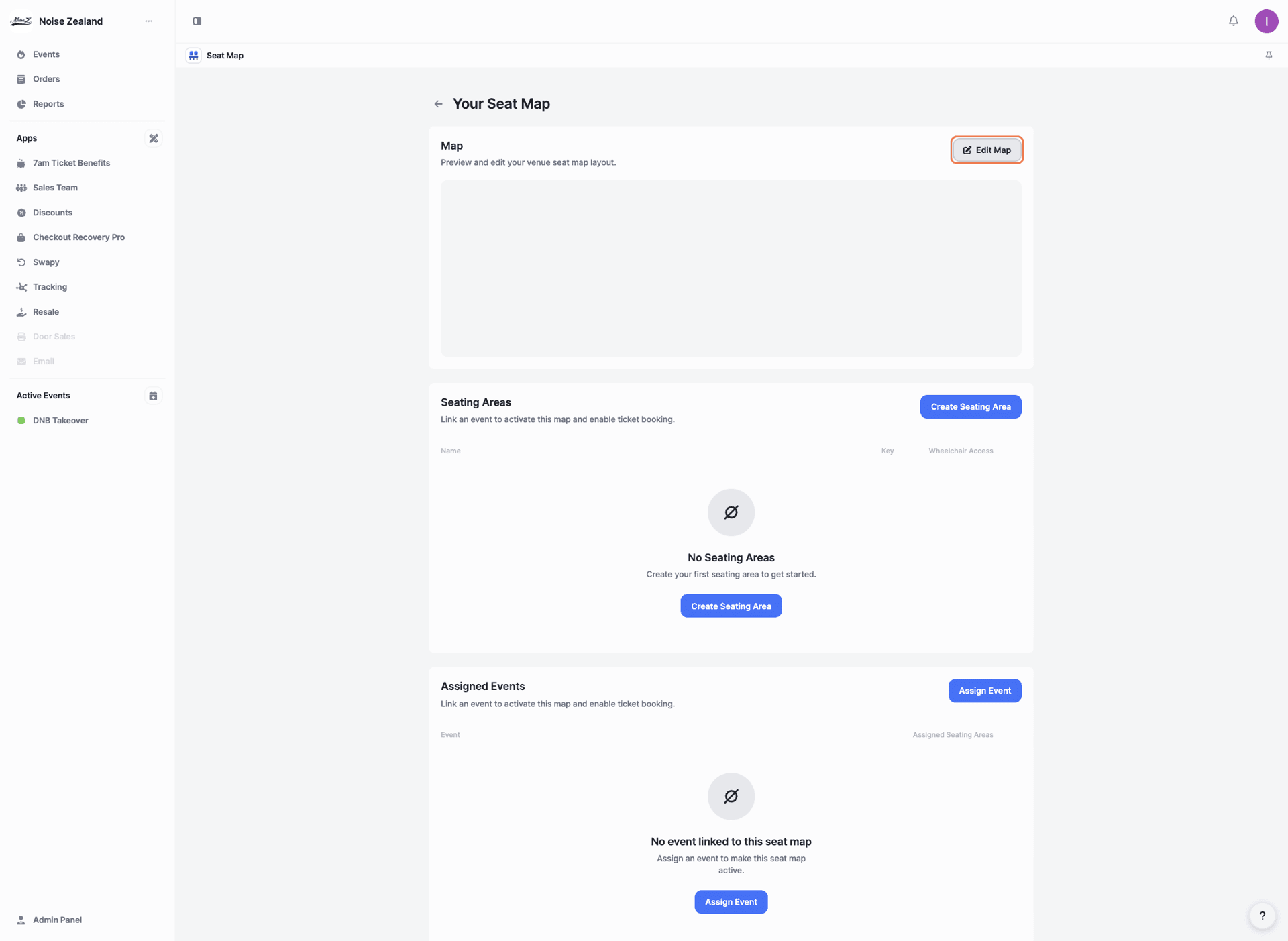 You'll see three sections: Map, Seating Areas, and Assigned Events. In the 'Map' section, click 'Edit Map'.