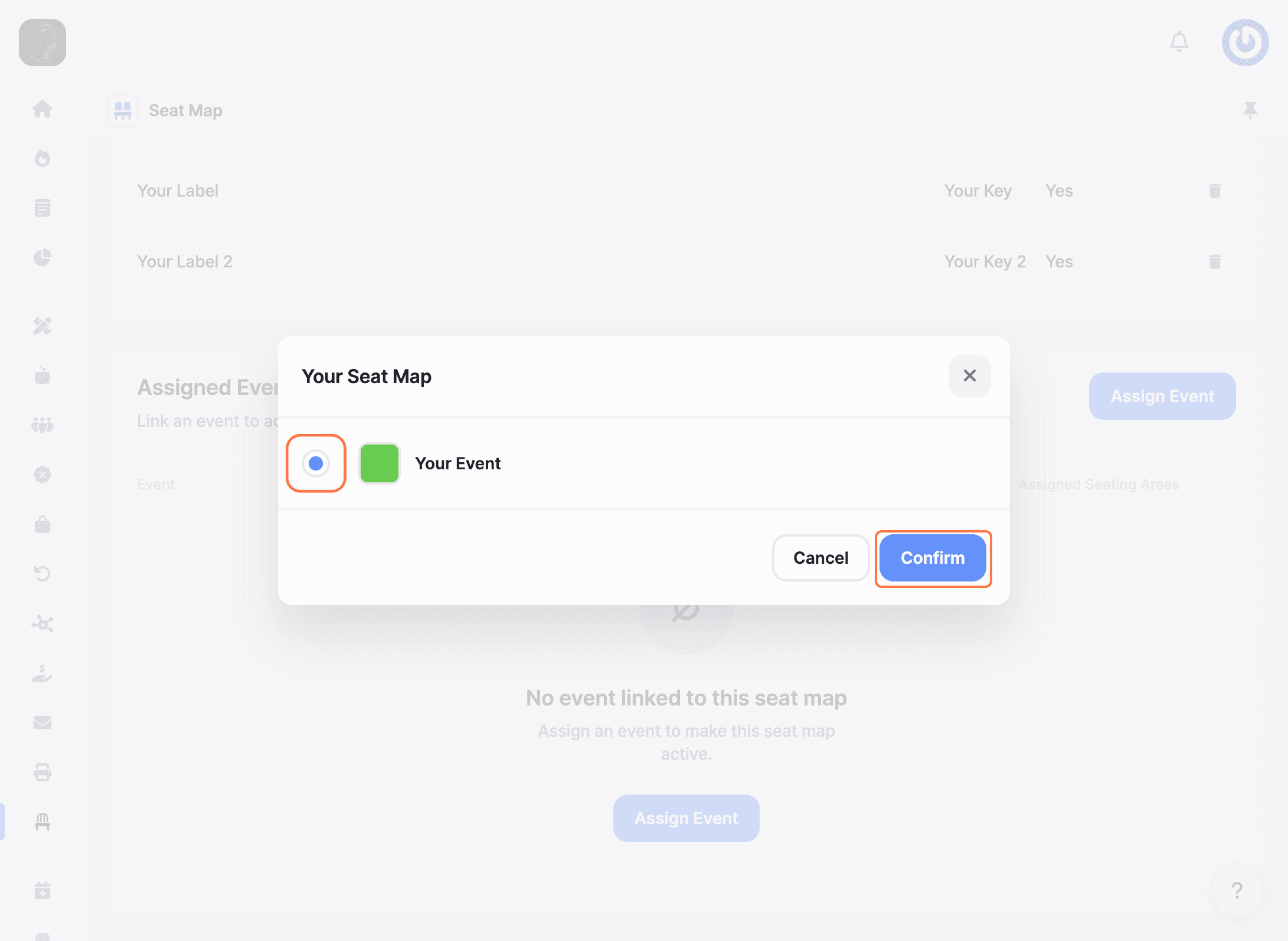 Select the event you want to link to this seat map from the list and click 'Confirm'.